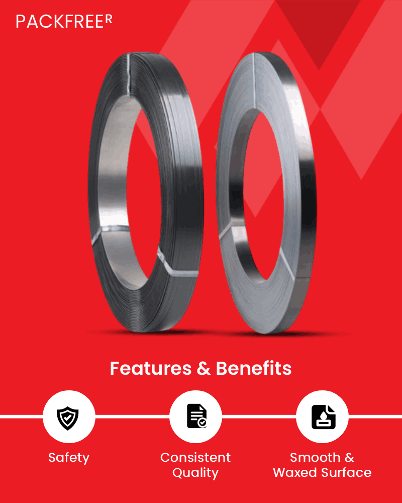 Packfree ® products are specially developed for low duty applications. These steel strappings are manufactured from carefully selected chemical compositions which offer the desired properties to the finished products and also enhancing the economic value addition (EVA). These products are commercially competitive compare to the other heavy duty grades but at the same time are a perfect matched in terms of the fit for purpose application.